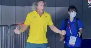 Tras confirmarse el oro para la oceánica, su entrenador Dean Boxall ‘enloqueció’ y lo celebró de una manera tan efusiva en las gradas que hasta asustó a una voluntaria de la organización, una escena que se viralizó rápidamente a través de las redes sociales.