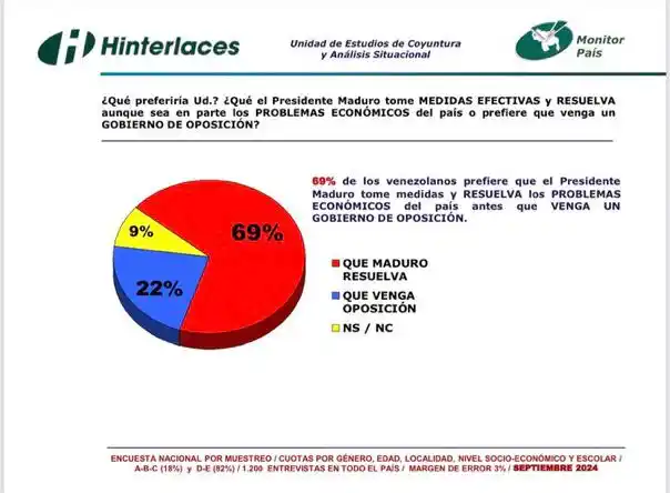 69% prefiere que Maduro resuelva los problemas y no que venga un gobierno de oposición.