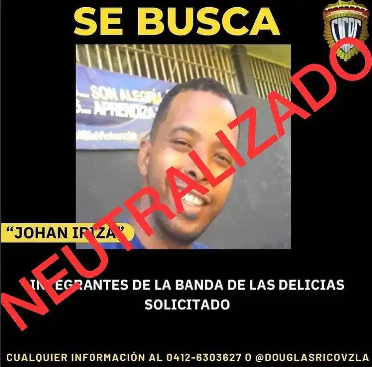 Un duro golpe asestó el Cuerpo de Investigaciones Científicas, Penales y Criminalísticas (CICPC), después de que en un enfrentamiento el fin de semana ultimaran a Eduardo Delicias y uno de sus hombres fuertes, Johan Iriza, quienes eran buscados por el homicidio de dos jefes de la policía científica en la zona mirandina de Barlovento.