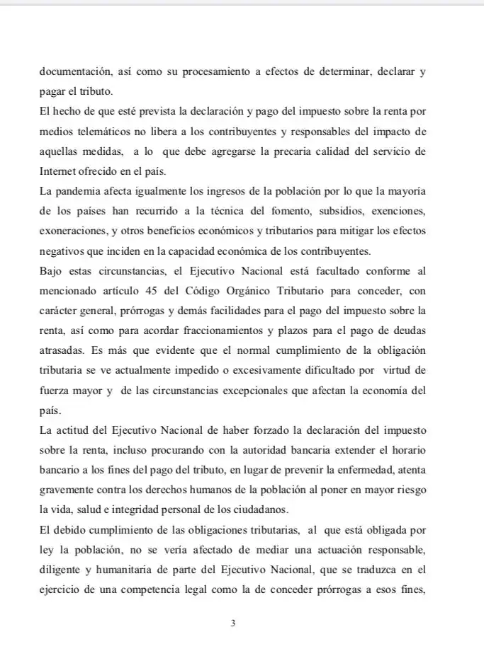 Asimismo, aclara que «el hecho de que esté prevista la declaración y pago del ISLR por medios telemáticos, no libera a los contribuyentes y responsables del impacto de aquellas medidas, a lo que debe agregarse la precaria calidad del servicio de Internet ofrecido en el país”, denuncia.