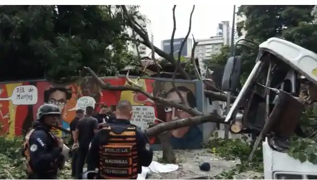 Un accidente fatal ocurrió este viernes en Caracas, cuando una mujer falleció mientras que una unidad de transporte publico quedó destrozada producto de un árbol caído.