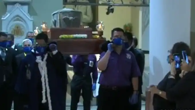 Este féretro fue llevado en procesión por el pasillo central hasta el Altar Mayor de la Iglesia de Nuestra Señora de La Candelaria.