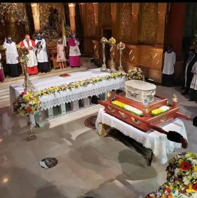 El féretro en el Altar Mayor de la Iglesia y la oración del Padre Nuestro, emocionó a más de uno de los testigos que tuvieron el privilegio de estar en este homenaje a quien se ganó el halo de la santidad por su labor en favor de los más pobres.