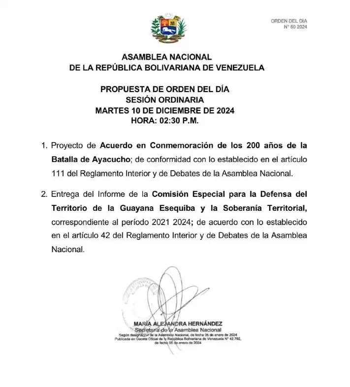 Así como la entrega del informe de la Comisión Especial para la defensa del territorio de la Guayana Esequiba y la Soberanía Territorial, correspondiente al período 2021-2024.