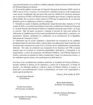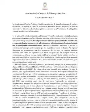 Academia de Ciencias Políticas y Sociales (@acienpol) reafirma su postura en defensa de la elección primaria así como de sus organizadores y actores que la promueven