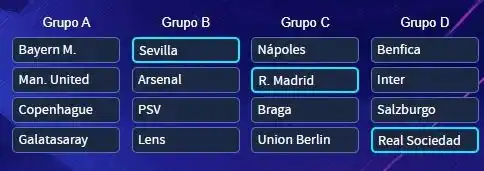 Por otro lado, el grupo más accesible podría ser el sector el sector C con Napoli y Real Madrid como los grandes favoritos para avanzar a la siguiente fase del certamen. Italianos y españoles comparten grupo con Braga y Union Berlín, clubes con muy poca experiencia en Europa.