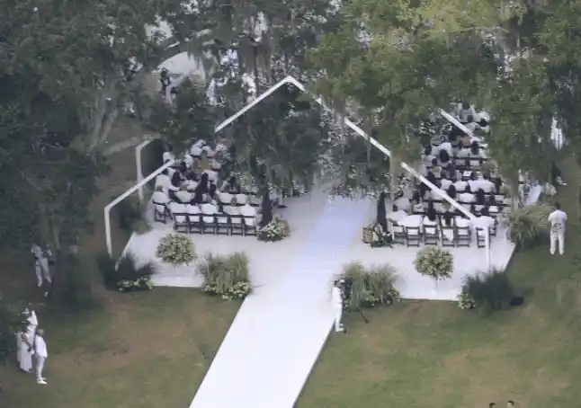 Page Six tiene una serie de fotografías donde no solo los Bennifer, sino el resto de cortejo e invitados estuvieron de blanco durante el enlace