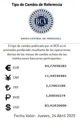 BOLÍVAR A BOLÍVAR: Dólar BCV asciende a 83,41