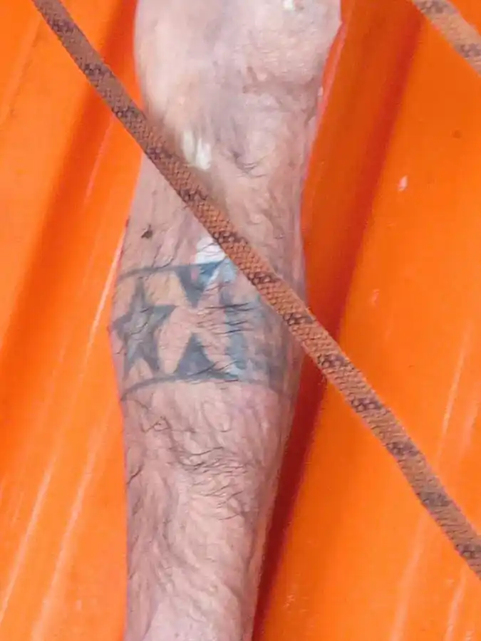 Como más pistas de su identidad, una hora más tarde el comunicador social difundió que la víctima tenía un tatuaje en el antebrazo.