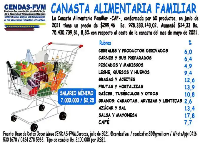Bs. 928.333.143,02: el impagable costo de la Canasta Alimentaria Familiar de junio, según el Cendas-FVM