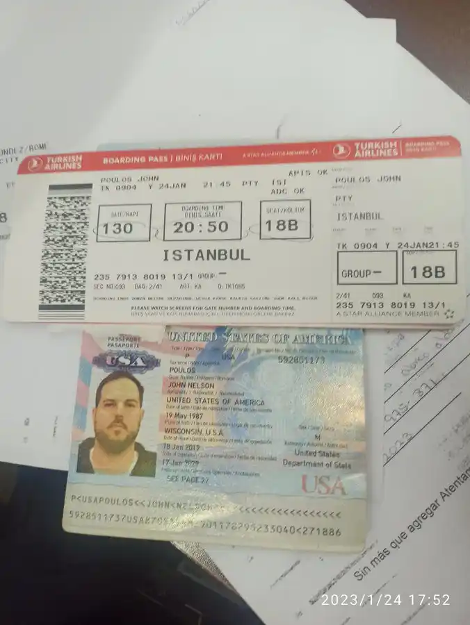 Las autoridades panameñas también compartieron la foto del pasabordo y el pasaporte del hombre, en el que se puede confirmar su nombre completo: John Nelson Poulos y que nació Wisconsin, Estados Unidos, en mayo de 1987.