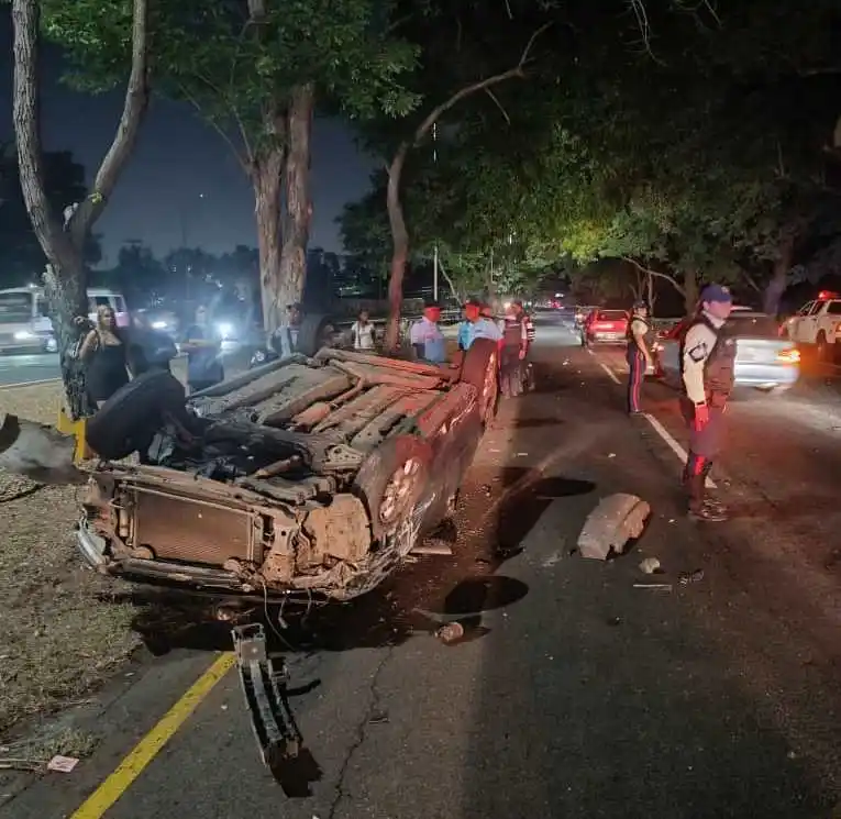 Una mujer murió y un hombre resultó herido tras volcarse el vehículo en el que viajaban al impactar contra una patrulla policial en la avenida Guayana, en sentido hacia San Félix, a la altura del Parque Cachamay, en el estado Bolívar.
