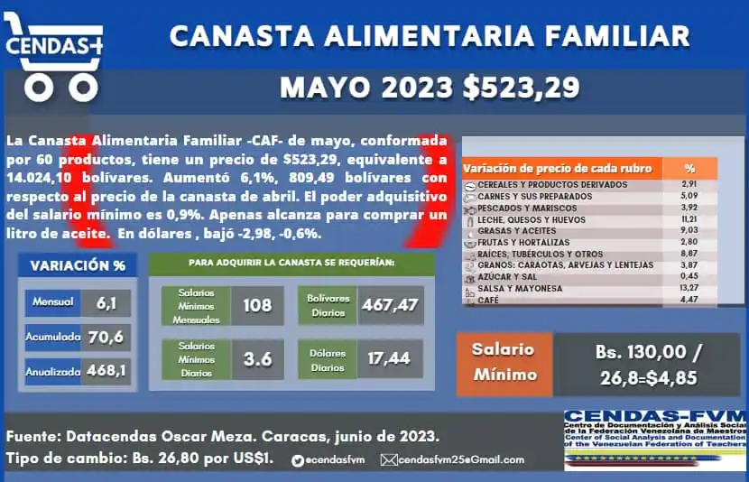 Este es el monto de una familia de seis miembros gastó en mayo, según los cálculos del Centro de Documentación y Análisis Social Cendas-FVM.