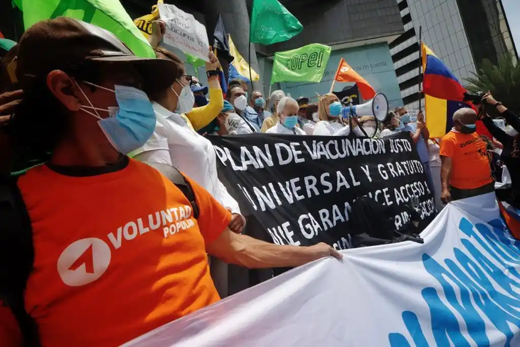 Personal del sector salud realizó una marcha hasta la sede del Programa de las Naciones Unidas para el Desarrollo (PNUD) en la ciudad de Caracas, para exigir vacunas para todos.