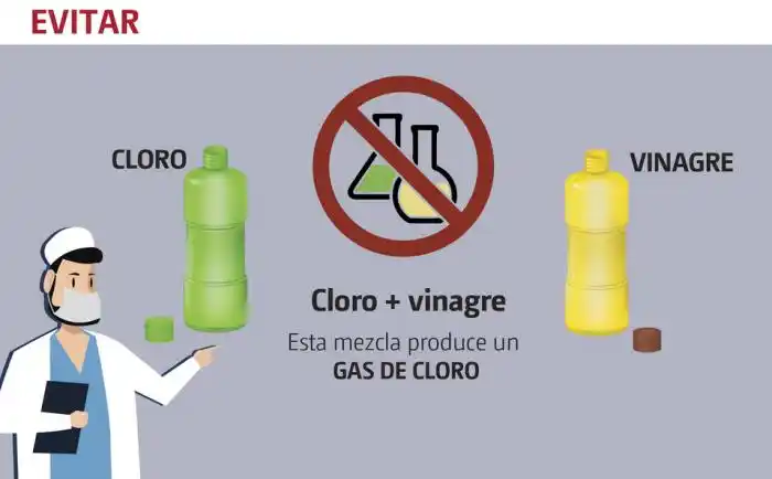 Si hay algo que no debes mezclar es el cloro (hipoclorito de sodio) y vinagre (ácido acético), ya que es extremadamente peligroso , ya que juntos crean el gas cloro.