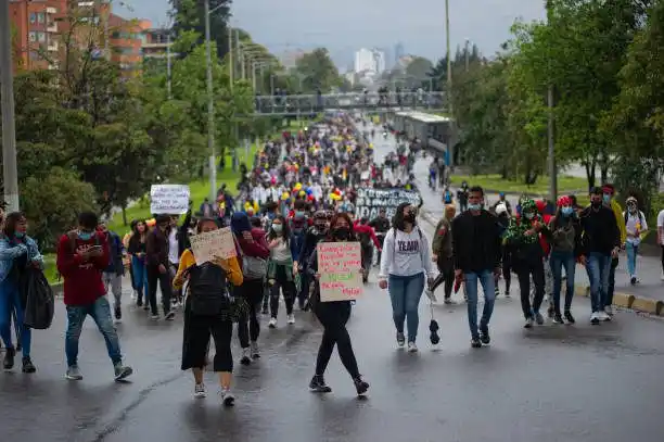 Miles de colombianos, principalmente jóvenes exigiendo oportunidades salen a marchas a diario, en protestas pacíficas donde priman expresiones culturales. Foto: Getty Images :format(webp):quality(40)/https://impactovecdn.eleco.com.ar/media/2021/05/gettyimages-1232678669-612x612-3.jpg)