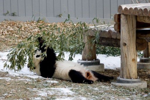 El espacio cuenta con estructuras para escalar, césped y una hamaca y por lo que se pudo apreciar este viernes están muy a gusto porque estaba jugueteando entre la nieve y masticaban bambú.