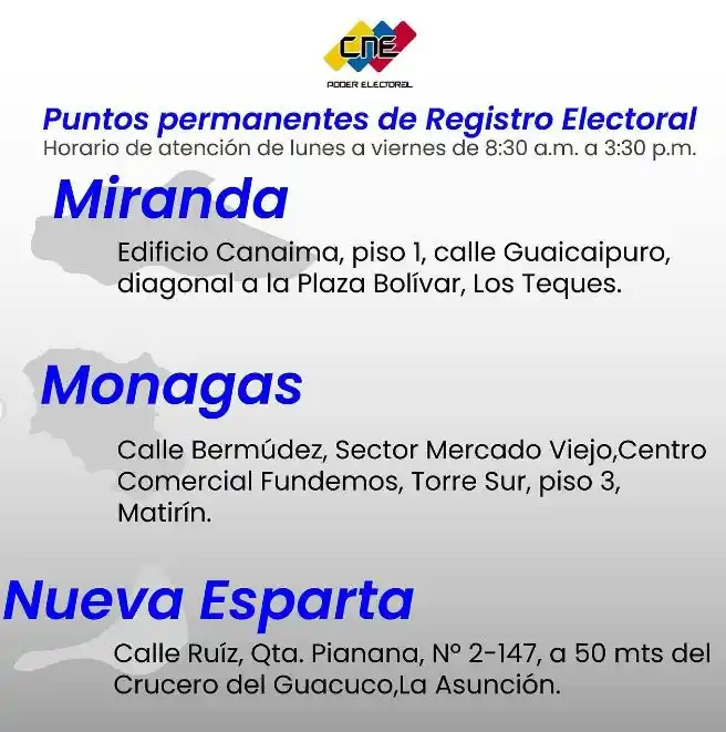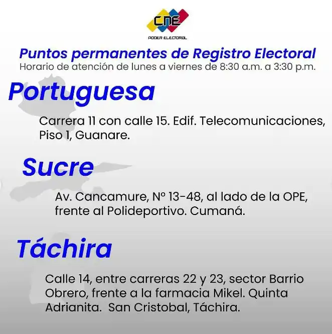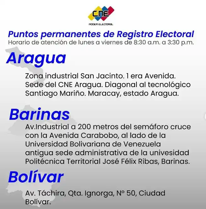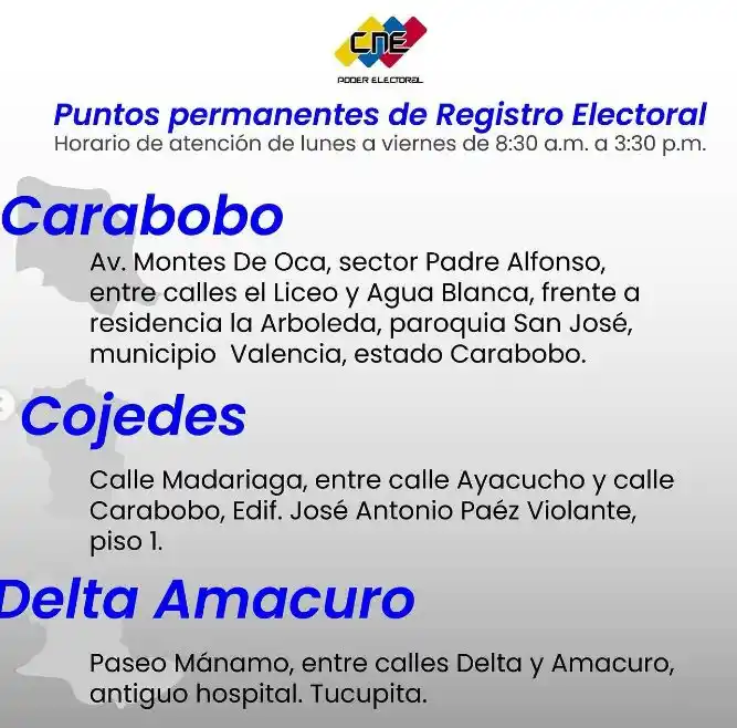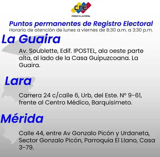 El anuncio corresponde a lo indicado en su momento el presidente del CNE, Elvis Amoroso, sobre la habilitación de los puntos permanentes para la inscripción y actualización del Registro Electoral.