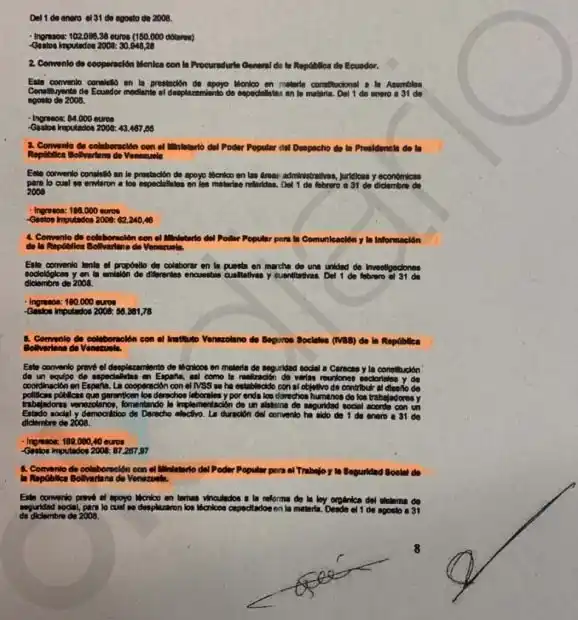 Añade que «la mitad del dinero, al menos, de la inmensa mayoría de los convenios y contratos firmados con Venezuela o Ecuador nunca se gastó. Según las cuentas de la Fundación. Es decir, los países populistas pagaban para realizar trabajos, pero siempre sobraba dinero y nadie lo reclamaba. Y ese dinero se quedaba para ser repartido entre los “beneficiarios” de los fondos. Tal y como destacan las cuentas de CEPS publicadas por este diario.