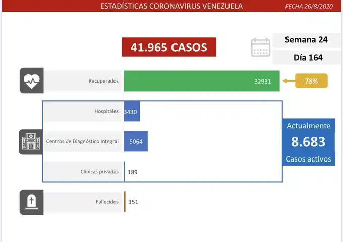 Mientras que la pandemia en Venezuela se cobró la vida de 8 personas y lleva la cifra de decesos a 351.