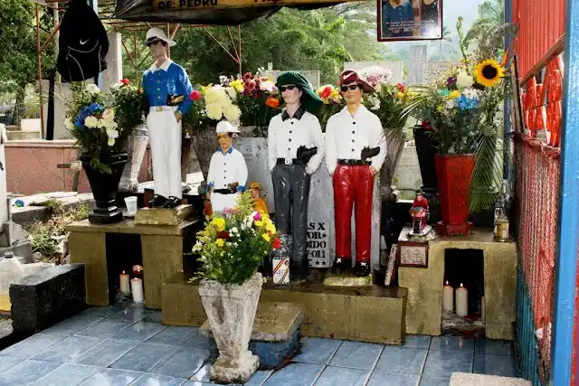“Entre ellos hay ex guerrilleros y vagabundos, tipo Robin Hood, médicos y curanderos, importantes personajes históricos o políticos y personas muertas en accidentes. Algunos cultos son locales, otros muertos milagrosos tienen devotos en todo el país”.