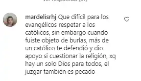 Esto hizo que varios usuarios le pidieran «respeto» hacia la fe católica. Mientras, otros le recordaron que cuando ella fue criticada hace unos días por orar por su rito cristiano; ellos, siendo católicos, estuvieron ahí para defenderla.