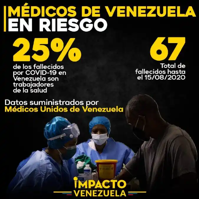 El 25% de los fallecidos por COVID-19 en Venezuela son trabajadores de la salud, el número más alto en el mundo. “Normalmente el índice de médicos fallecidos por país a causa del coronavirus son de 0.2%, mientras que en Venezuela, el 25% de los fallecidos son médicos”, aseveró Urbina.