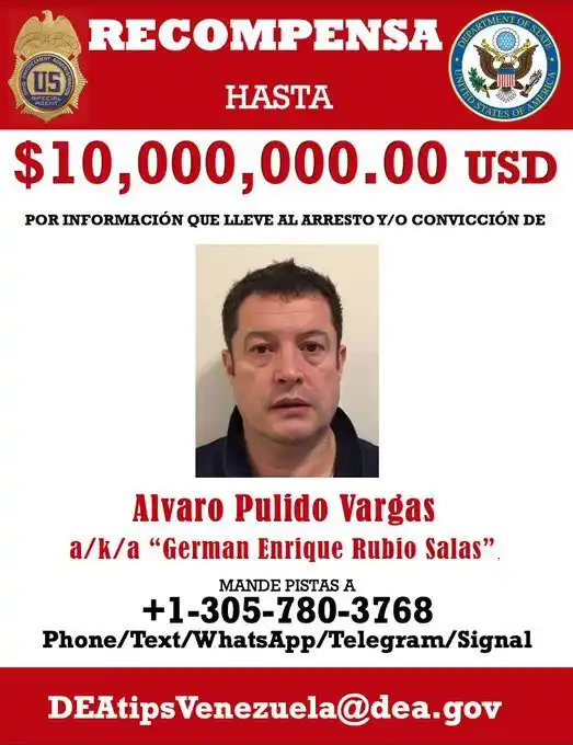 Estados Unidos ofrece una recompensa de 10 millones de dólares por su captura, el gobierno norteamericano lo acusa de lavado de dinero, cargo por el que está detenido Alex Saab.