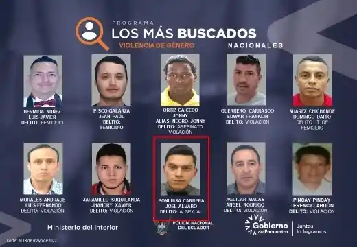 Álvaro Joel Ponluisa Carrera, de 24 años, está en la lista de Interpol de los 10 más buscados de Ecuador, por abuso sexual y pornografía infantil