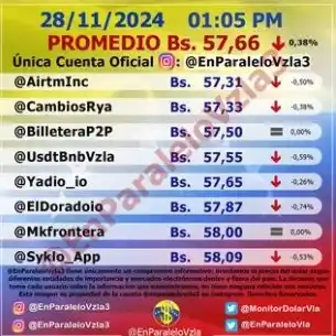 El mismo alcanzó los 57,66 bolívares la tarde de este jueves.
