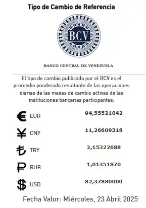 El tipo de cambio publicado por el BCV es el promedio ponderado resultante de las operaciones diarias de las mesas de cambio activas de las instituciones bancarias participantes.