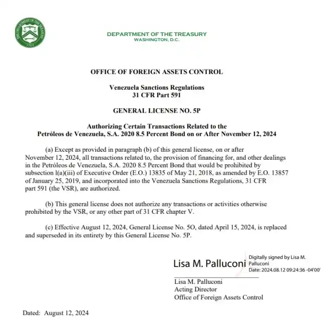 El Departamento del Tesoro de EE.UU. extendió hasta el 12 de noviembre una licencia general que protege a Citgo Petroleum, de propiedad venezolana, de acreedores, según un aviso publicado el lunes en la página web del departamento.