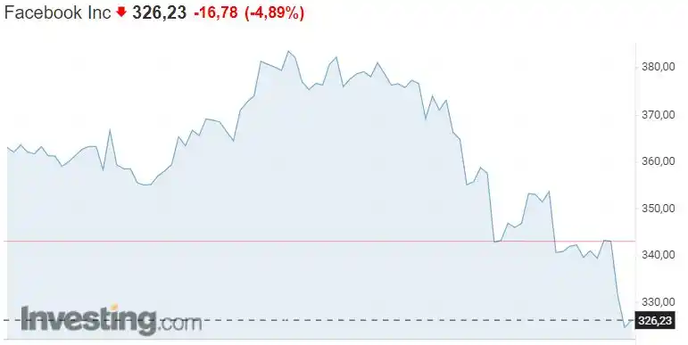 Facebook, un peso pesado del Nasdaq, cayó en bolsa un 4,89%, hasta los 326,23 dólares. Desde sus máximos de septiembre, la firma perdió un 15%. La plataforma estuvo «en el centro de atención como uno de los mayores perdedores» de la sesión, explicaron los analistas de Schwab.