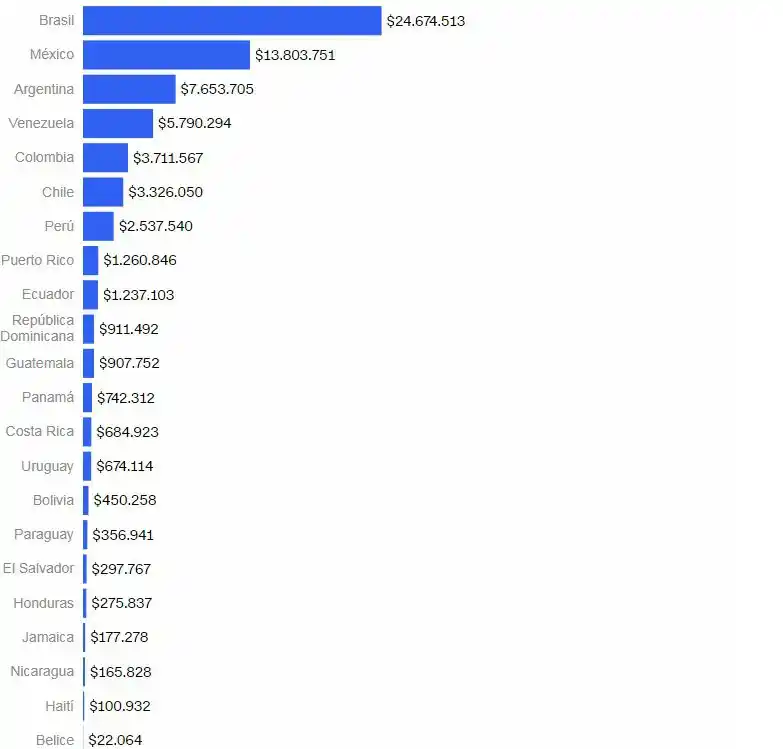 También se documentó la posible pérdida en los países latinoamericanos. Muchos negocios en América Latina tienen en las plataformas de Facebook su principal canal de ventas y de logística, por lo que hubo pérdidas económicas. ¿De cuánto fueron? Estas son las estimaciones, según la herramienta Cost of Shutdown Tool.