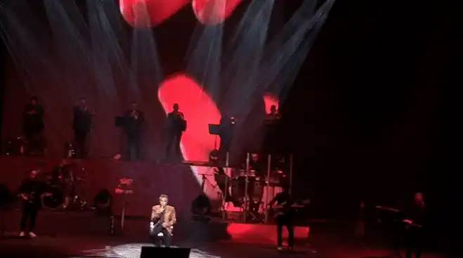 Vestido de negro con chaqueta marrón, el cantante estuvo una buena parte de su espectáculo sentado. Su voz está igual que cuando se convirtió en el ídolo que es. Sin embargo, se apoyó en los coros de las gargantas presentes, sobre todo en las notas más altas. Además de dos pulmones nuevos, ya son casi 80.