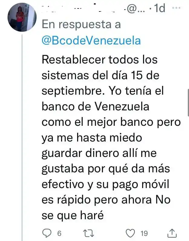 Las redes sociales del BDV emitieron el siguiente mensaje «debido al proceso de restabelcimiento progresivo en nuestra plataforma, es posible que no puedas visualizar algunas operaciones»