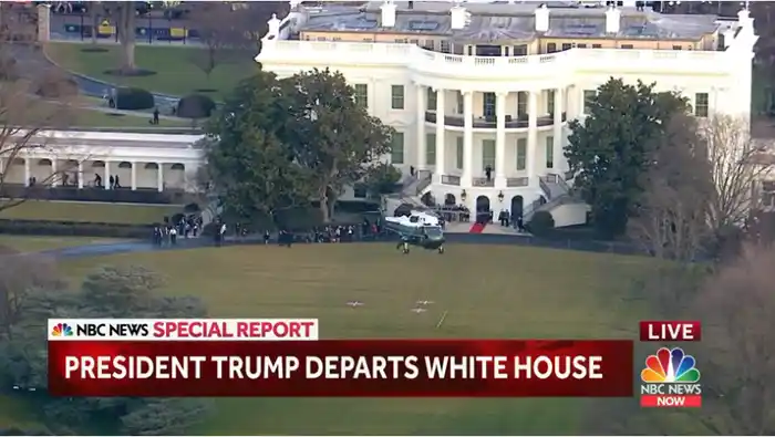 Trump se dirigió a la base aérea militar de Andrews (Maryland), a las afueras de Washington. Allí celebró un breve acto de despedida con seguidores, y posteriormente subirá al avión presidencial, Air Force One, por última vez para viajar a su club privado de Palm Beach (Florida).