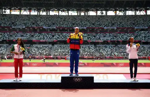Pasadas las 9:00 pm hora de Venezuela, la reina del atletismo mundial Yulimar Rojas recibió el oro olímpico, que se ganó en la competencia de salto triple.