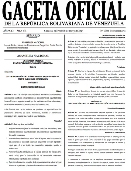 Tal como lo anunciaron las autoridades venezolanas y dándole la celeridad del caso, ya fue publicada la Ley de Pensiones en Gaceta Oficial