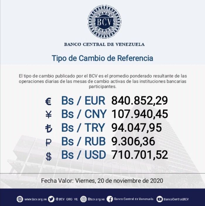 El dólar en el mercado oficial, promediado por el Banco Central de Venezuela, sigue rezagado. Para este viernes, la divisa oficial se ubicó en 710.70152 bolívares.