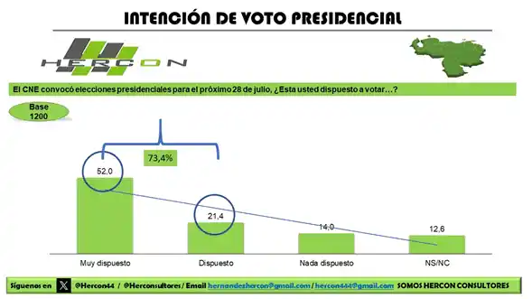 Maduro, emergen datos muy significativos según nuestros estudios de opinión, intención de voto 73,4% conectado al cambio y una popularidad Maduro que se mueve en 15,1%.