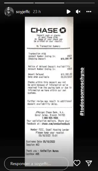 Asimismo, el cineasta mostró cheques y depósitos que se hicieron en la cuenta de Chyno para dejar claro que los fondos no fueron a parar a otro destino; como hubo ciertos comentarios que daban cuenta de una posible malversación.