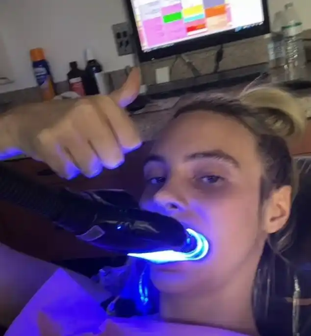 En su cuenta en la red social X compartió una imagen del momento en el que le hacen un blanqueo dental, acompañado de una risa y emoticones.