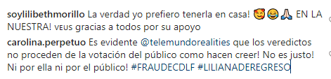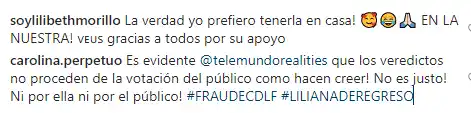 «¡Liliana es la famosa eliminada de esta semana! Del 1 al 10, ¿Qué tan justa te parece su partida», escribieron en la cuenta oficial sobre la salida de la hija de Lila Morillo y El Puma.