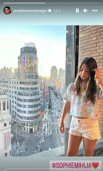 En una nueva publicación en sus historias de Instagram, el actor subió una gráfica de la adolescente en la que escribió «Sophie mi hija» con la imagen de la jovencita de vacaciones.