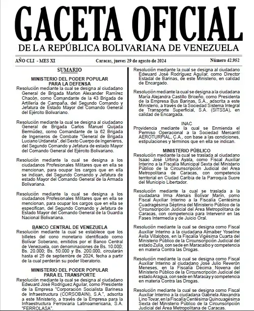 La resolución fue publicada en la Gaceta Oficial número 42.952, de fecha 29 de agosto de 2024.