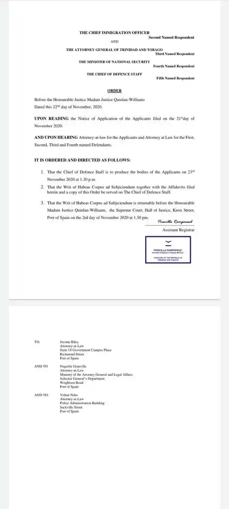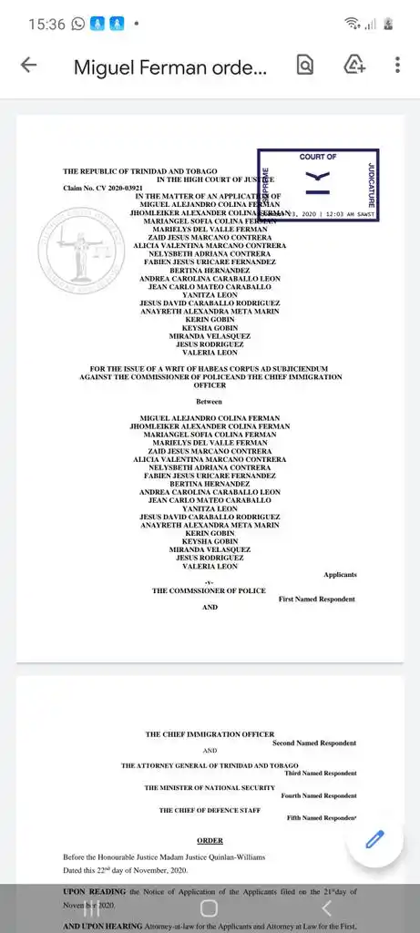 «Aquí el Habeas Corpus con los nombres de los menores venezolanos y los adultos, que serán dejados y abandonados, supuestamente en un islote que se encuentra en aguas venezolanas, supuestamente. Las autoridades de Trinidad y Tobago se lavan las manos», acusó Magallanes.