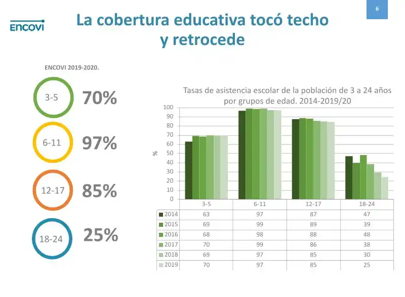 - Hay un retroceso enorme en el acceso a la educación entre la población de 18 a 24 años de edad.