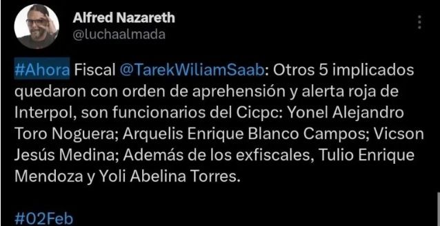 Recordemos que Toro Noguera integró un grupo que manipuló la escena del crimen de Tyrone González (Canserbero) y Carlos Molnar, según el Ministerio Público venezolano. El caso, reabierto años después, estableció que recibió 10.000 dólares por encubrir el doble homicidio.