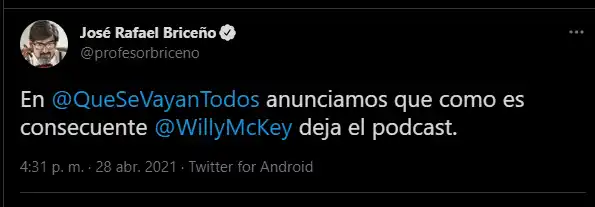 Luego de esto, el portal Prodavinci donde McKey trabajaba, anunció su desincorporación. Asimismo, José Rafael Briceño, con quien compartía podcast, anunció que ya no lo harán en conjunto.
